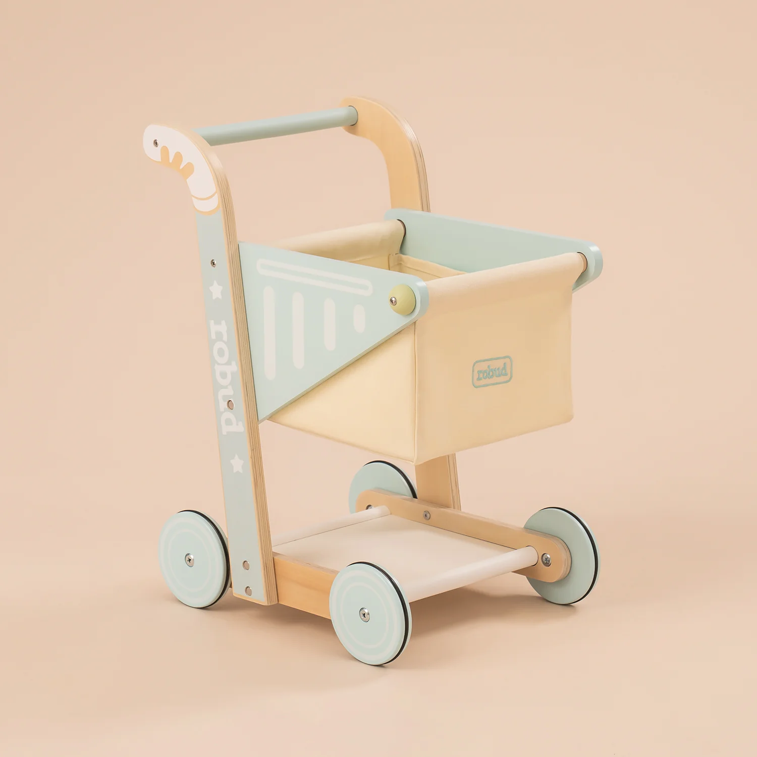 - __Walker & Kids Shopping Cart 2-in-1__ Double layer can hold multiple toys and dolls. Baby will find it fun to push the grocery cart around and pretend their parents are shopping. Learn to walk and keep their balance by transporting their belongings from here to there, thus exercising their leg and arm muscles. Also, you can control the speed of your baby's walk by adding or subtracting baby toys. This is a suitable learning walker baby or activity walker baby, a must-have push wooden toy.